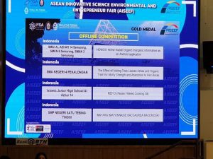 Berkolaborasi dengan kawan-kawannya dari SMK 6 dan SMA 3, ia meraih medali emas dalam ajang ASEAN INNOVATIVE SCIENCE ENVIRONMENTAL AND ENTREPRENEUR FAIR (AISEEF) tingkat ASEAN yang diselenggarakan oleh Fakultas Teknik Universitas Diponegoro Semarang.