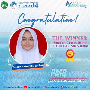 Alhamdulillah, kali ini prestasi diukir oleh Ananda Jasmine Naurah Sabrina, berhasil meraih Juara 1 Speech Competition FESTIFLA 2022 yang diselenggarakan oleh UNIKA Soegijapranata Semarang.
