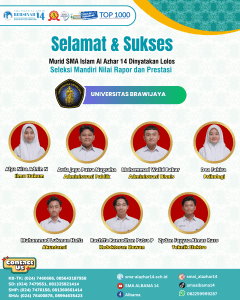 Alhamdulillah, murid SMA Islam Al Azhar 14 dinyatakan lolos seleksi Perguruan Tinggi Negeri melalui jalur Seleksi Mandiri Nilai Rapor dan Prestasi Universitas Brawijaya