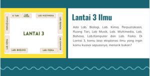 Lantai ketiga disebut sebagai “Lantai Ilmu” karena memuat berbagai ruang laboratorium dan fasilitas akademik. Bagi murid yang hendak fokus belajar dan mengerjakan tugas, maka lantai 3 bisa menjadi solusi belajar dengan tenang, dengan berbagai fasilitas  mencakup Laboratorium Biologi, Kimia, Fisika, Bahasa, Komputer, dan Multimedia. Selain itu, tersedia pula perpustakaan, Lab. musik, dan ruang tari. Lantai ini menjadi pusat eksplorasi ilmiah dan pengembangan bakat siswa, baik dalam bidang akademik maupun seni. Lantai 3 juga menyediakan tempat duduk yang luas untuk belajar atau berdiskusi.
