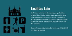 SMA Islam Al Azhar 14 Semarang berlokasi di Jl. Klentengsari No. 01, Pedalangan, Banyumanik, Kota Semarang merupakan sekolah yang menjunjung tinggi nilai-nilai keislaman dan pembelajaran berbasis sains dan riset. Untuk mendukung perkembangan murid, SMA Islam Al Azhar 14 memberikan fasilitas yang pendukung yang memadai, dari ruang kelas yang representatif dan fasilitas yang lain yang aman, nyaman, dan bersih.