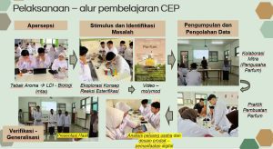 Pembelajaran yang kontekstual membantu siswa melihat relevansi kimia dalam kehidupan sehari-hari, sehingga meningkatkan motivasi dan rasa mampu. Misalnya dalam konteks pembelajaran reaksi esterifikasi dengan karakteristik materi yang abstrak memperkuat potensi munculnya chemistry anxiety dan menurunkan self-efficacy. Maka pembelajaran dapat dirancang berbasis Chemo-Entrepreneurship (CEP) dengan mengintegrasikan eksperimen pembuatan parfum dan kemitraan dengan Pengusaha Parfum lokal. Pendekatan ini tidak hanya menekankan aspek kognitif, tetapi juga afektif dan kontekstual. Alur pembelajarannya seperti gambar berikut.