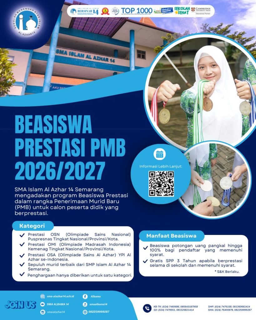Potret Putra-Putri SMA Al Azhar 14 di SNBP 2026 SMA Islam Al Azhar 14 kembali menorehkan prestasi membanggakan melalui kelulusan 24 putra-putri terbaiknya dalam Seleksi Nasional Berdasarkan Prestasi (SNBP) 2026. Dengan penuh rasa syukur dan kebanggaan, capaian ini menjadi bukti nyata komitmen sekolah dalam membina generasi unggul yang tidak hanya berprestasi secara akademik, tetapi …
